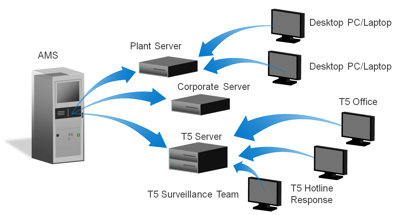 Virtual AMS (VAMS): VAMS provides another way to view system data. VAMS sends system data from the plant computer to the Triple 5 Virtual Network. Triple 5 utilizes VAMS for initial data analysis, moving to the VPN or modem connection when spectrum analysis, system maintenance and/or file transfer is needed. VAMS will be required once the Triple 5 Smart Leak program is complete.